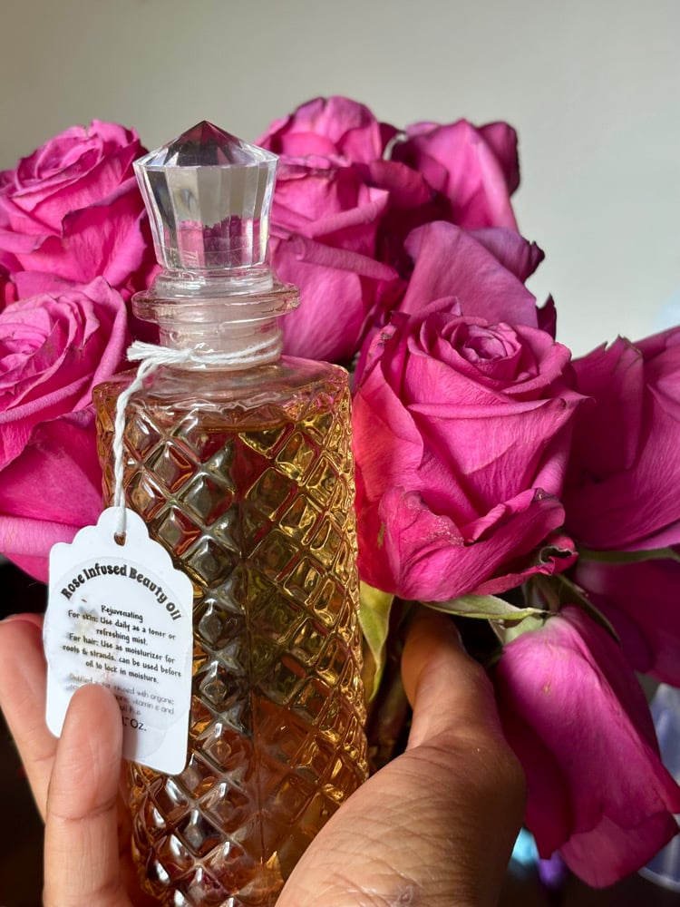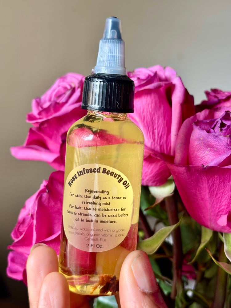 🌹 A nourishing blend of almond, grapeseed, jojoba, and olive oils, infused with vitamin C-rich rose petals for deep hydration and skin-strengthening benefits.