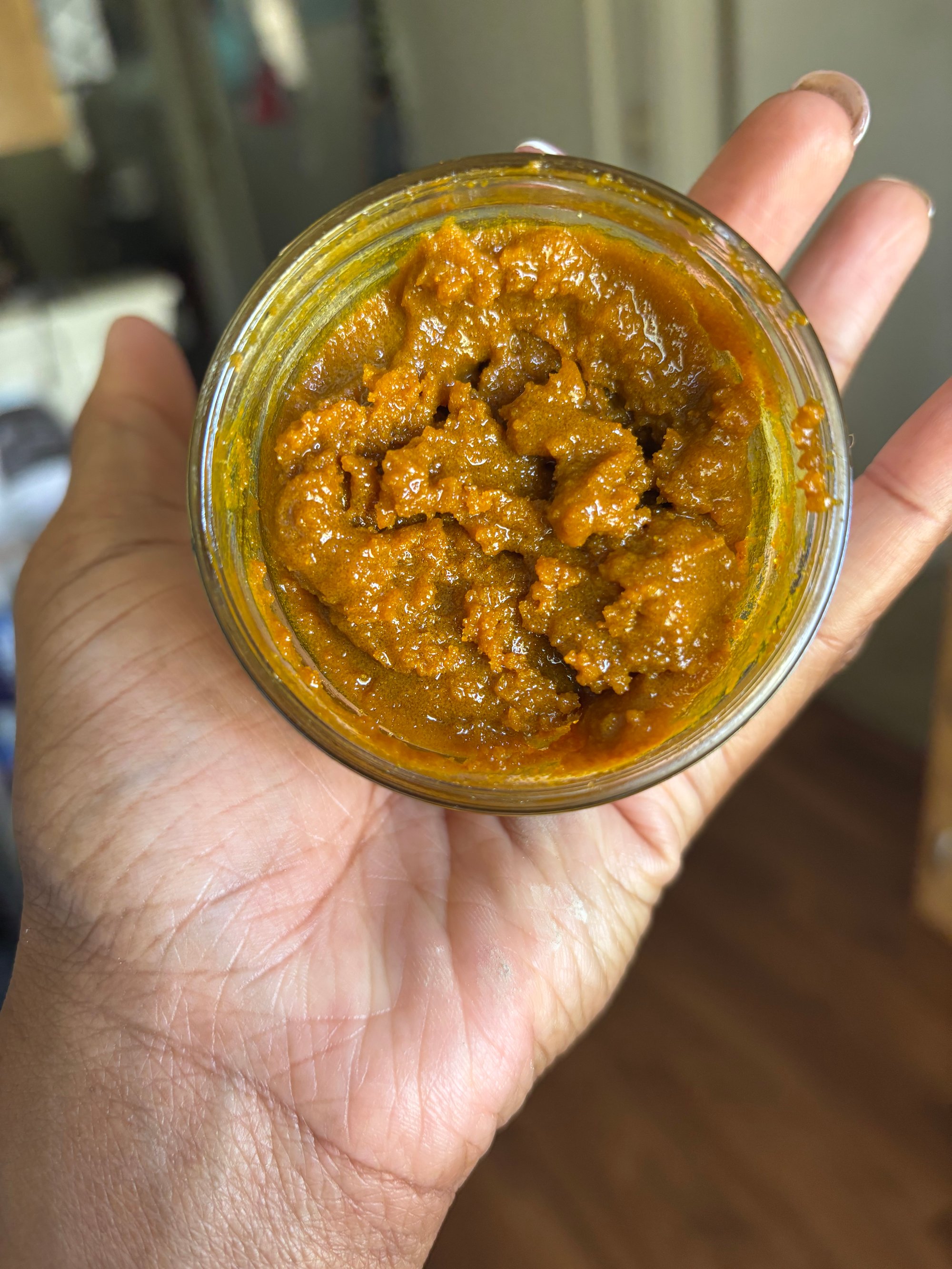 Organic Brown Sugar, Vitamin E, Aloe Vera Calendula Oil, Neem, Organic Manuka Honey, Tamanu Oil.